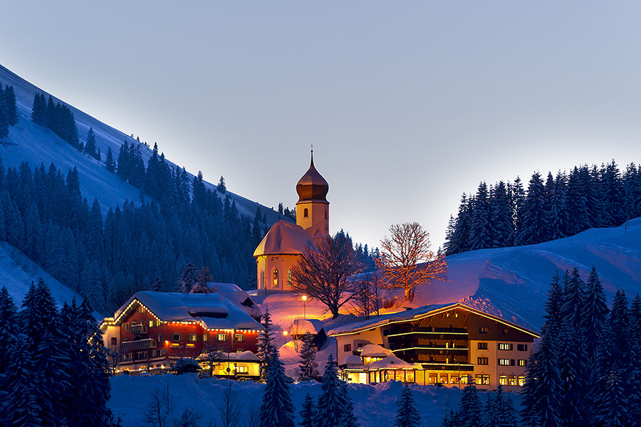 Lassen Sie den Abend in unserer gemütlichen Sauna „Bergkristall“ mit atemberaubendem Dorfblick auf die bekannte Pfarrkirche St. Nikolaus ausklingen.
